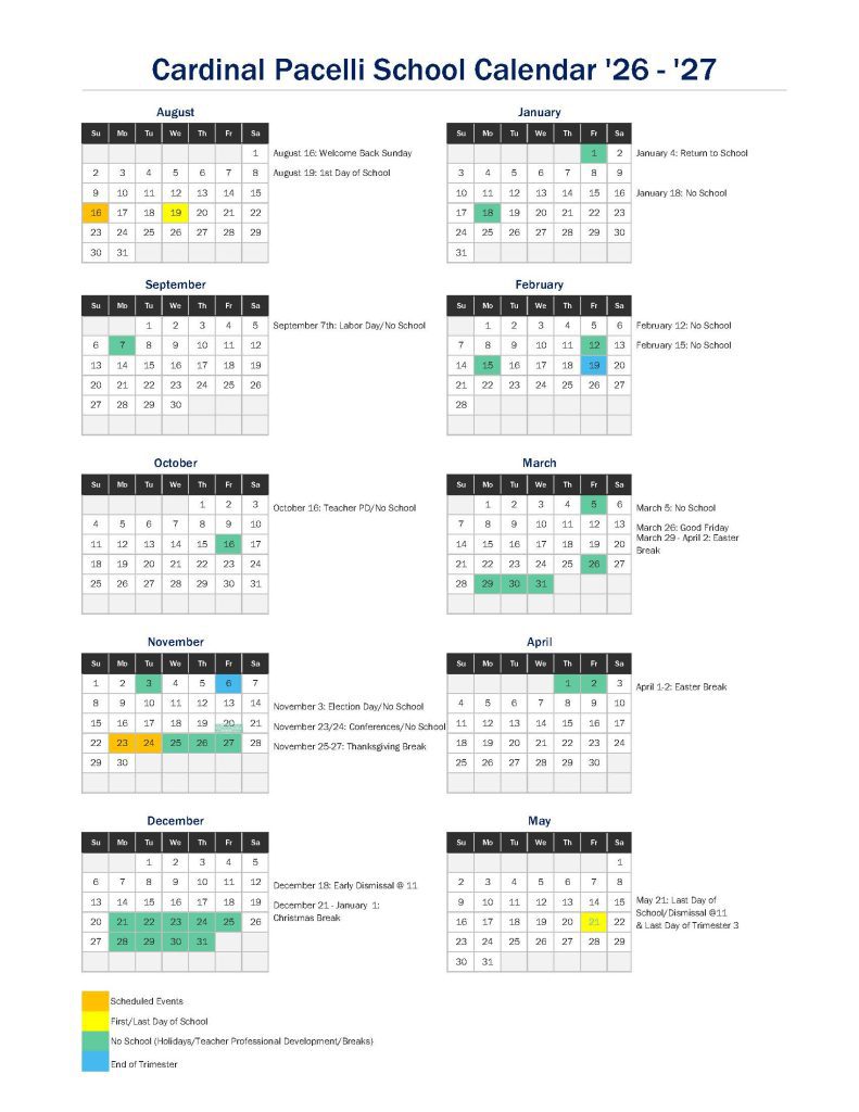 Click Here to Download Preliminary 2026 -2027 Calendar Key dates are set for the ’26-’27 School Year! More dates, like testing and concerts, will be added as they become available. Click Here for a Downloadable Copy of the ’26-’27 Calendar